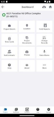 • Create Daily Field Reports in the field by, managing equipment usage, capturing progress (WIP entry), and noting weather and jobsite conditions. You can also document the worksite by taking and attaching photos and voice memos, all of which sync back to the office for date stamping, safe storage and easy reference.