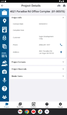 • Access the files and attachments in your office application, including project documents, drawings, subcontracts, change orders, purchase orders, and more.