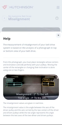 • Measuring the rotary speeds of your pulleys • Measuring the frequency and tension of your belt • Measuring the geometry and misalignment of your system • Analyzing all these data to carry out a complete check-up of your belt drive system