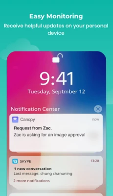 Receive convenient notifications about your child’s online activity and adjust their Canopy settings from your personal device using the main Canopy app or Canopy web dashboard