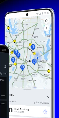 - Easily find truck stops, service stations, and rest areas for more strategic trip planning