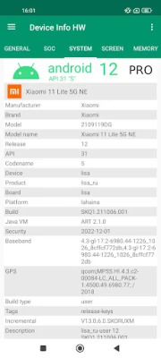 Device Info HW is a hardware and software information app for Android devices.