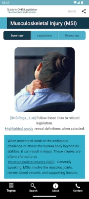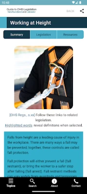When downloaded on your device, you can search and browse summaries and legislation. When connected through the Internet or WiFi, you can view resources and links, submit feedback about the app, and receive update notifications.