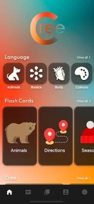 The Manitoba Swampy Cree Language App was developed and created by the Aboriginal Languages of Manitoba Inc. and the Manitoba Indigenous Cultural Education Centre Inc. The app contains 16 categories with over spoken 150 words and phrases un the Swampy Cree language.