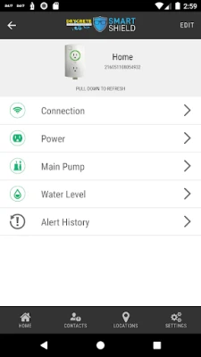The Smart Shield app alerts you in the event of your sump pump malfunctioning, high water alert, power loss and other important events. You can act to prevent water damage before flooding can occur. View real-time current conditions, pump activity and alert status.